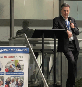 He explained that, thanks to generous local donations, fundraising, gifts and legacies, the Friends have been able to support more than fifty projects valued over £1m in the last six years. This includes investments in radiology equipment (notably the state-of-the-art CT Scanner at £575,000), stroke aids and new follow-on exercises classes, mobile scanners for community nurses, physio gym and much more. We also redesigned the hospital’s internal signage, and this year introduced a new WiFi system to improved service for patients, staff and visitors.