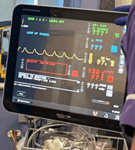 Simon Corral (Lead Clinician) demonstrated the multi-function RESUS monitor used to continually monitor patients with serious heart and other conditions. The monitor is on a mobile trolley so it can be moved directly to the patient’s bedside, it displays vital signs with an audible alert if an adverse condition arises for heart rate, blood pressure, oxygen saturation and respiratory rate. This was donated by the Friends to allow clinicians to stabilise unwell patients until they can be treated, discharged, or transported by ambulance to A&E if needed.