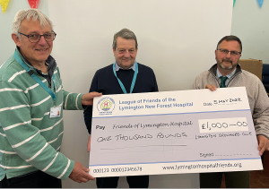 We hold quizzes and other events including ‘pig racing’ to raise money for local charities. This year we are very pleased to donate £1,000 to the hospital Friends to help future projects as Lymington Hospital provides a great service to the local community”.